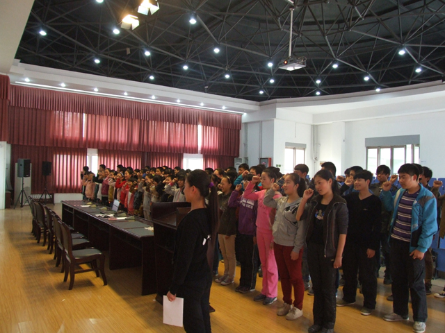为了提高团员意识,激发共青团员的光荣感和责任感,积极响应学校的创先争优活动,4月24日下午第三节,市七中在学校多功能厅举行新团员入团宣誓仪式,75名中学生通过团组织的严格考核光荣的加入了中国共青团。