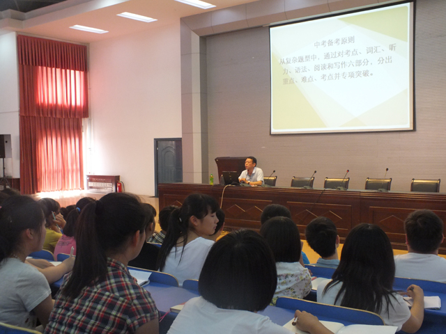 2013年5月15日下午,我校邀请平顶山市首届名师刘红宾老师,在报告厅为九年级学生做英语学科的考前辅导。刘老师从事英语教学工作多年,教学经验丰富,多次荣获优质课教师、优秀辅导教师称号,是我市名师工作室成员,曾经出国访学,在英语教学方面有很深的造诣。